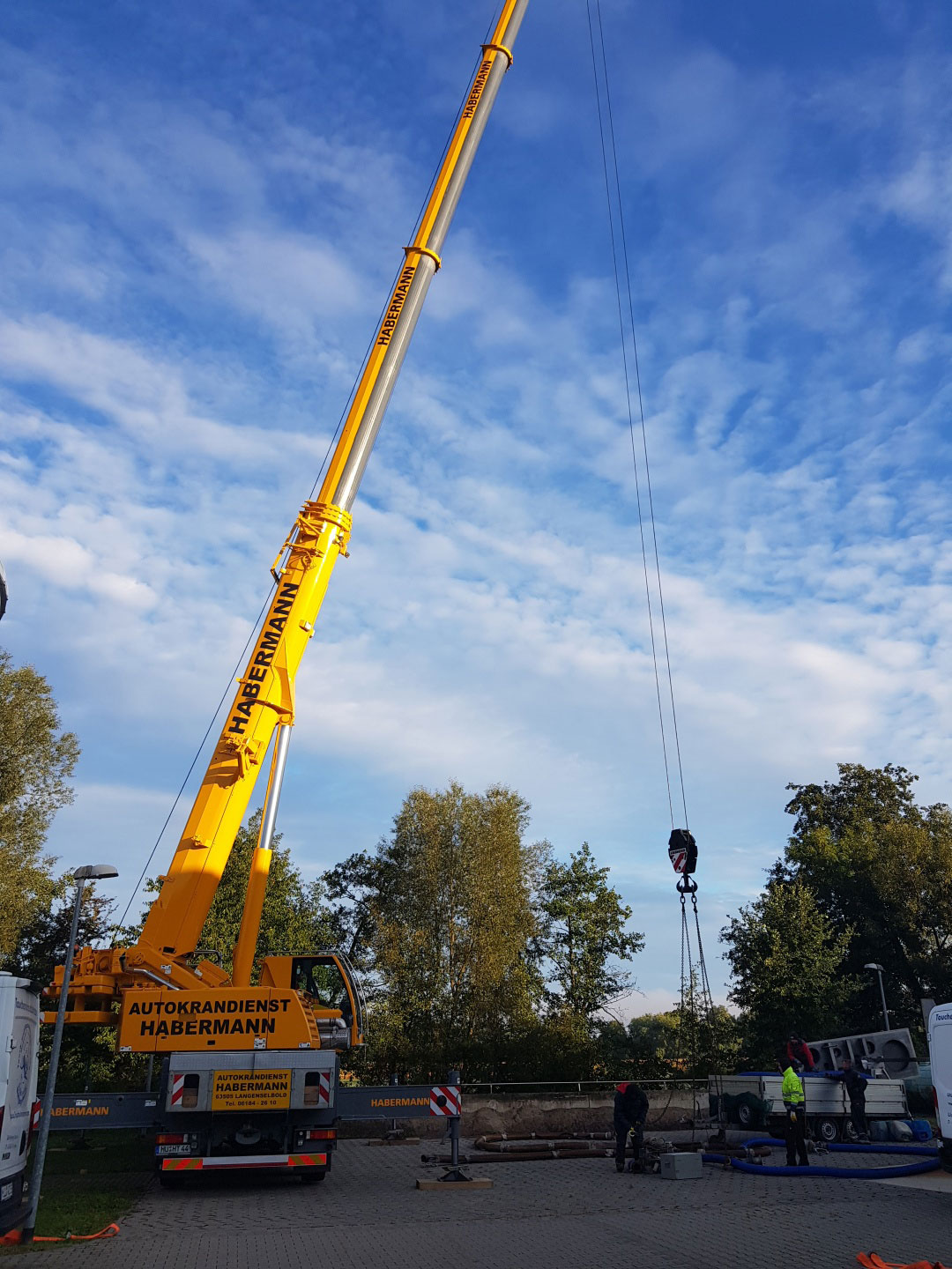• Sicherung: Jede Bewegung wird von oben überwacht; die Arbeiter sind zweifach gesichert.